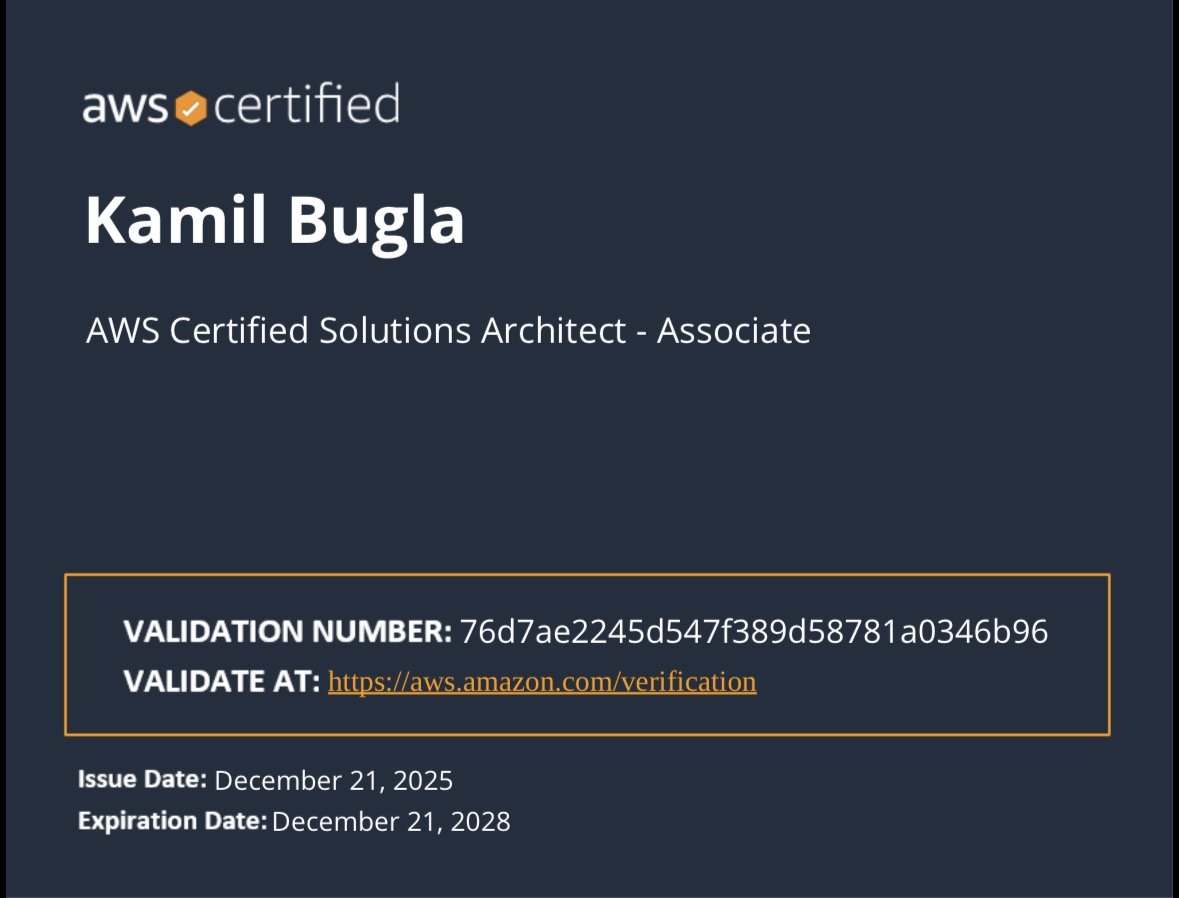 I hold two cloud certifications: Google Cloud Professional Data Engineer and AWS Solutions Architect Associate and have hands-on experience designing cloud solutions.